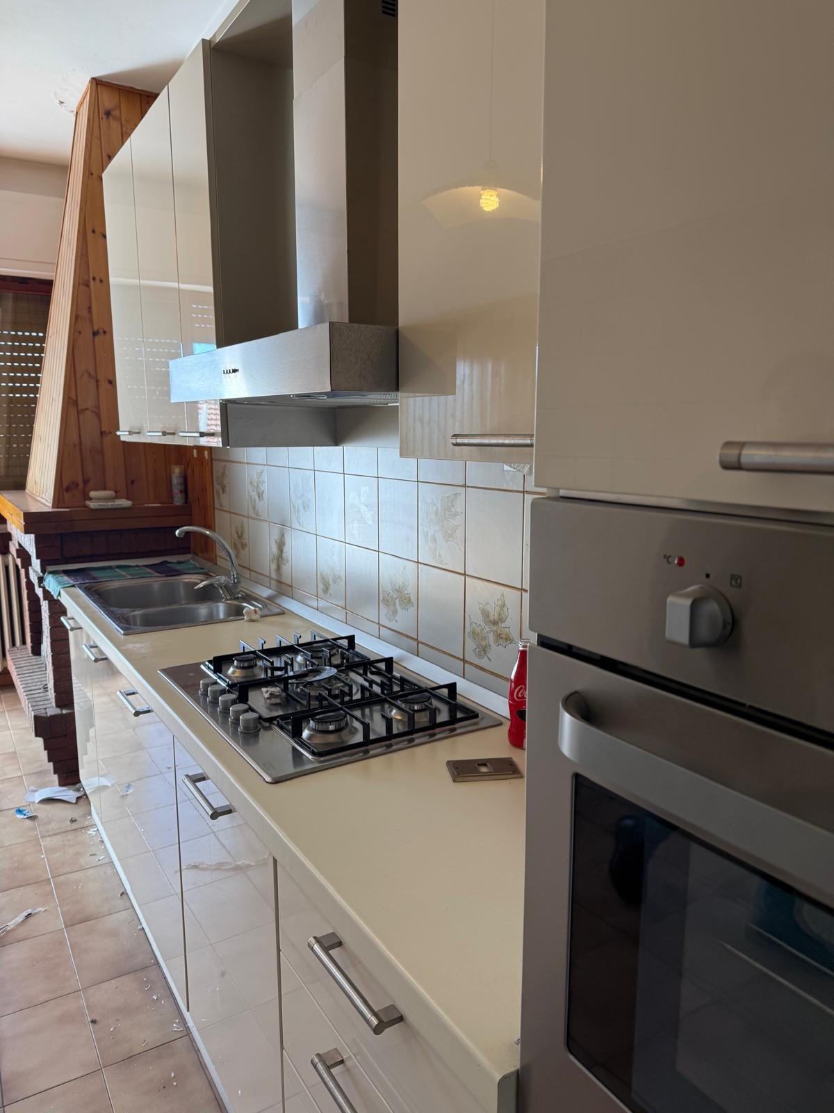 L'appartamento, in buono stato e con impianti elettrici e termoidraulici a norma, dispone di un soggiorno, una cucina abitabile arredata e con ripostiglio, tre camere da letto e doppio servizio.