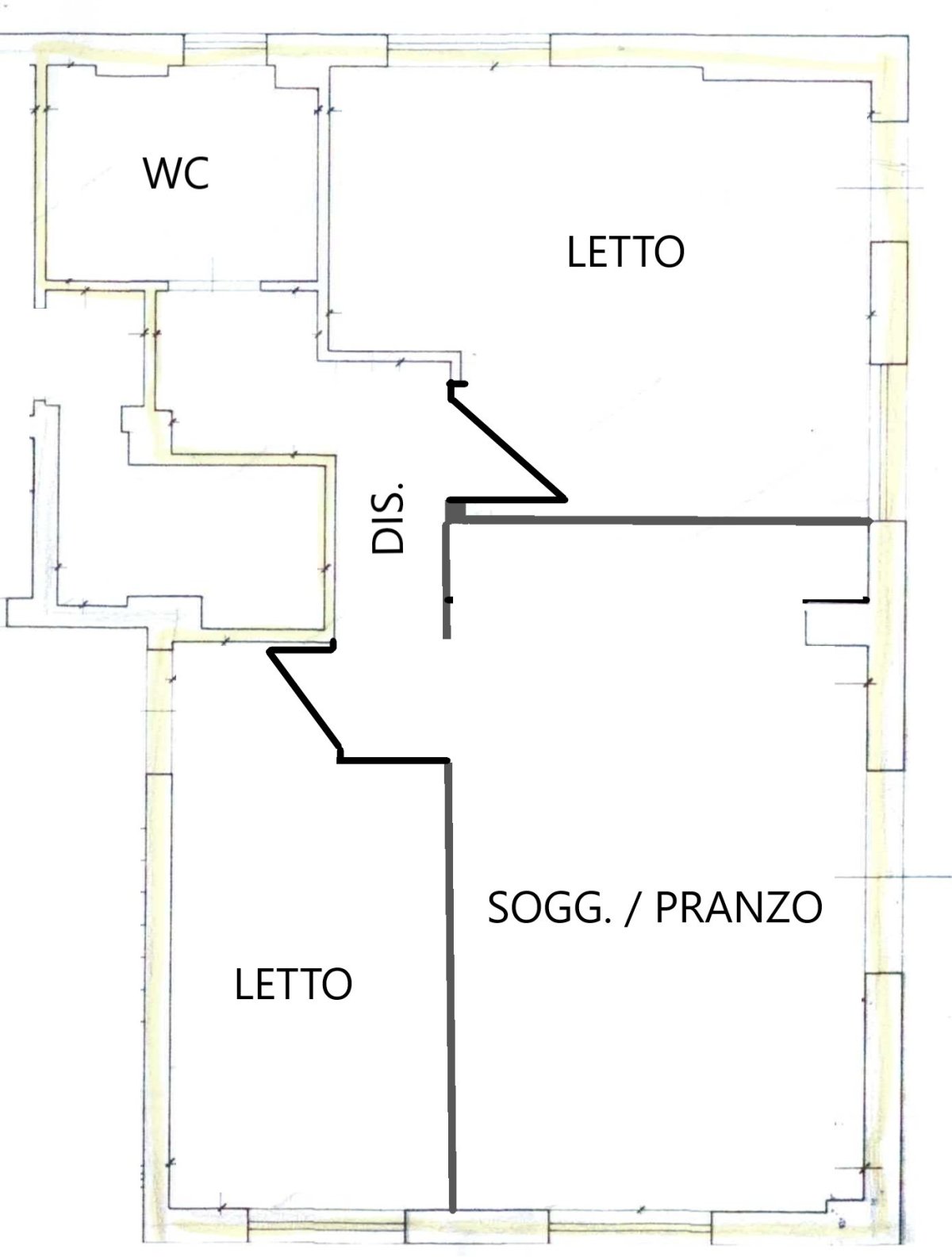 Sono disponibili planimetrie allegate per visualizzare lo stato attuale e le modifiche proposte.